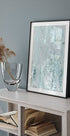 En rolig, malerisk vinterskov folder sig ud i dæmpede nuancer af hvid, blå og grøn, hvor snedækkede graner står stille under et blødt vinterlys og fjerne bjergkonturer anes i horisonten. En stemningsfuld landskabsscene af casa cartissi, der indfanger den kølige stilhed og tidløse vinterpoesi. Med fnugfin frost i luften.